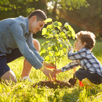 Parent and child planting tree Published October 10, 2025 at 400 × 400 in Parent and child planting tree Father wearing gray shirt and shorts and son in checkered shirt and pants planting tree under sun. ← Previous Next →